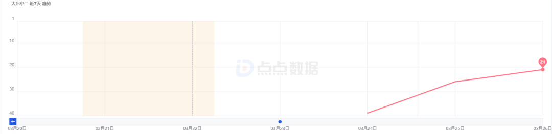 点点数据显示,《大店小二》3月24日上线首日,位列iOS免费榜第39 名,随后两日排名持续攀升。截至3月26日,《大店小二》已升至免费榜第 21名。
